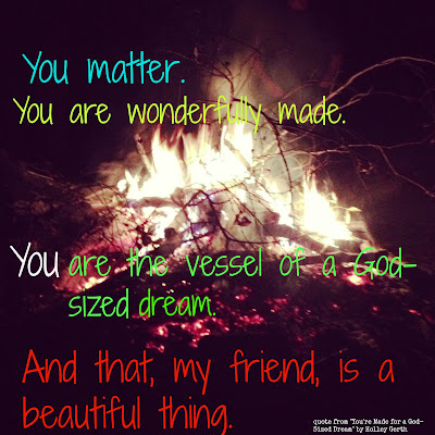 Resist the urge to compare, and instead embrace that this dream is between you and God. He doesn't want you to change who you are to be someone else. He simply wants you to become all he's created you to be and trust that means you will have everything you need to make this dream come true.... You are a one-of-a-kind wonderful. You are chosen by God for a particular purpose, and he promises to see it through to completion if you'll only say yes to what he's whispering to your heart and your heart alone.That was taken from Holley Gerth's You're Made for a God-Sized Dream. This book has truly blessed my life, it's great to take a few minutes out of your day and read this along with my bible and my other book I am using as a devotional (Check it out! This book is AMAZING!) Anyway it really made me think about my dreams and how God can truly open doors if you follow his will for your life and listen to him and if he wants you there... you will be there.
